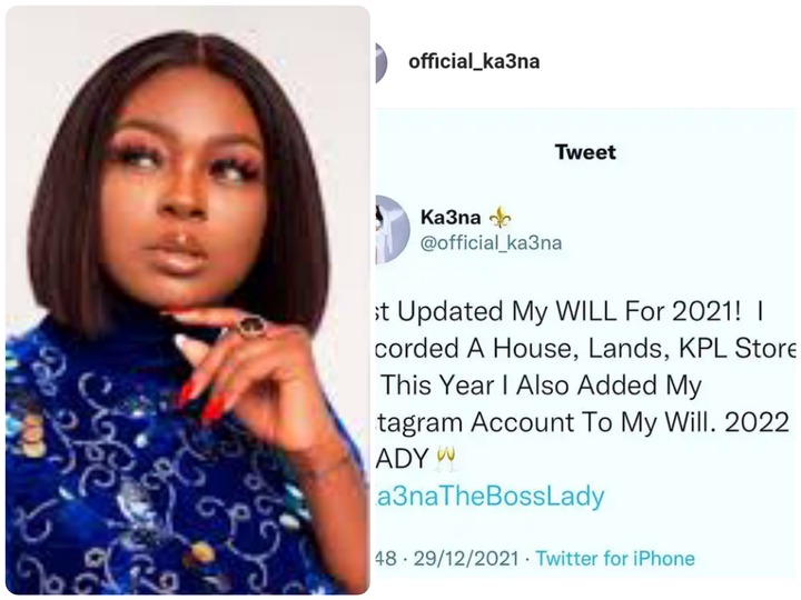 With the year 2021 rounding up and many eyes fixed towards receiving the new year, former Big Brother Naija reality star Ka3na seems to be well ready towards moving on to 2022, after she made a post that suggests so. The Amourka3na boss shared a message on her Instagram wall on the changes she had made on her will which at the same time highlights her achievement and these changes includes the following: